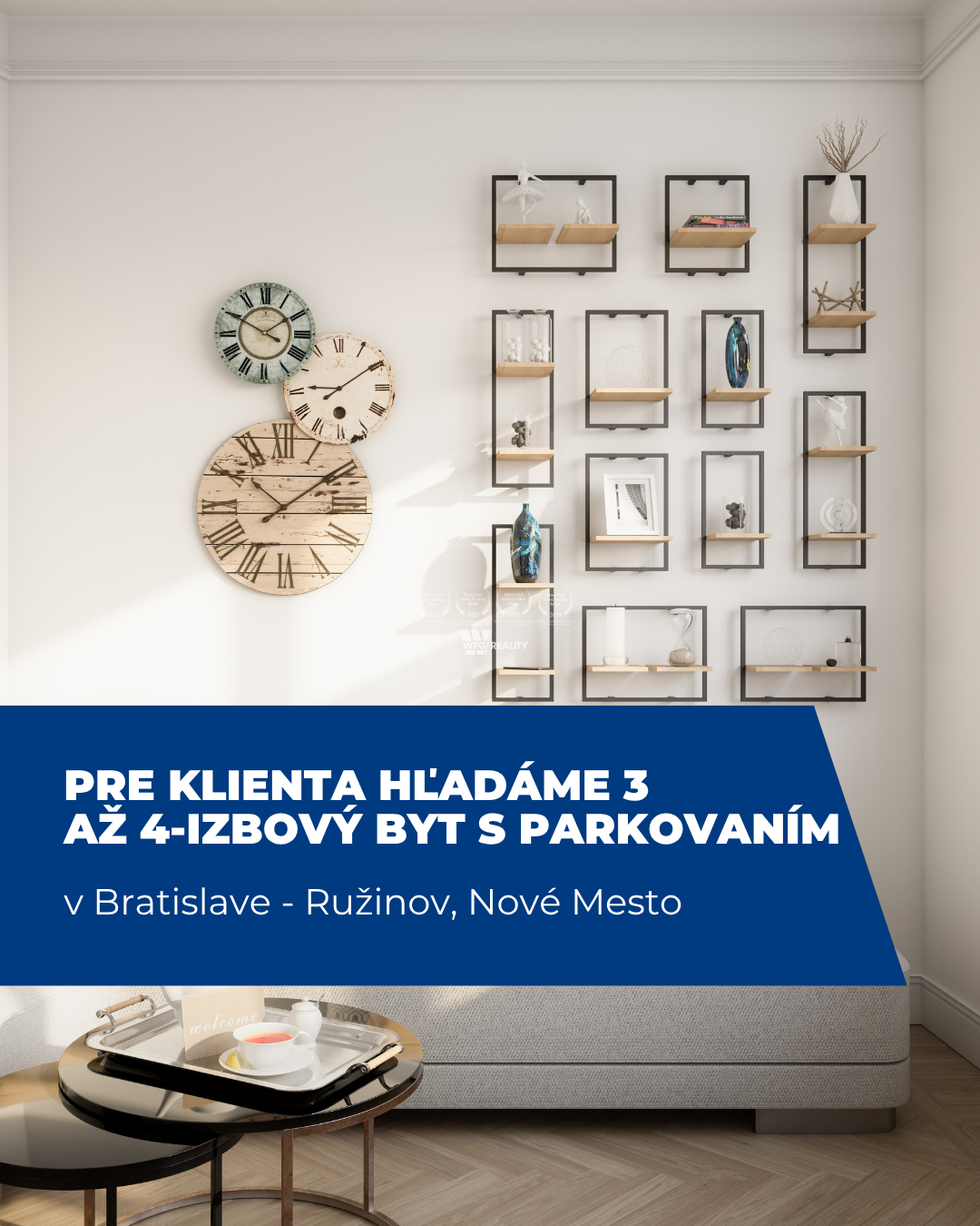 Hľadáme pre klienta: Priestranný 4-5 izbový byt v Bratislave - Staré mesto (Ružinov / Nové Mesto)