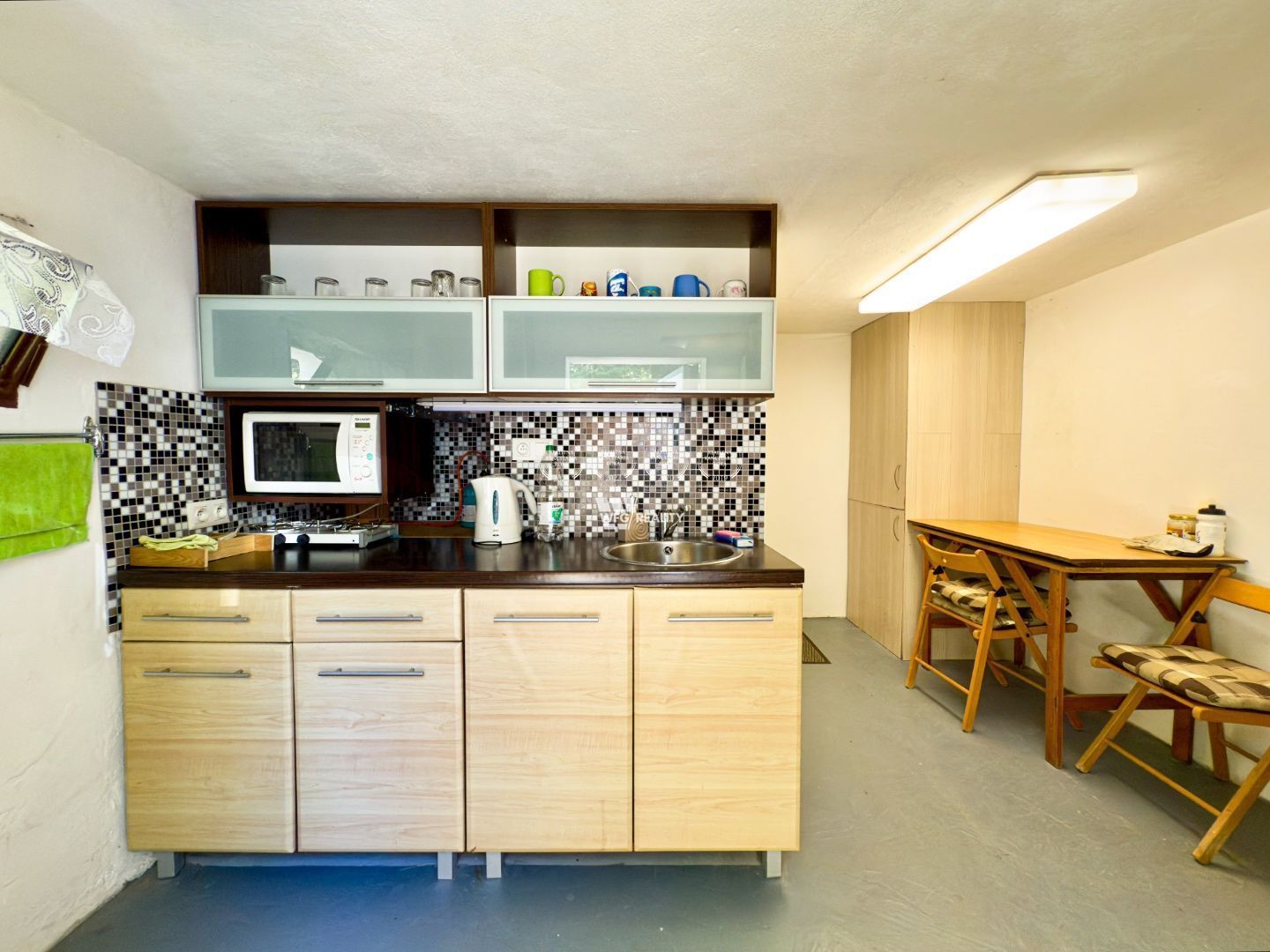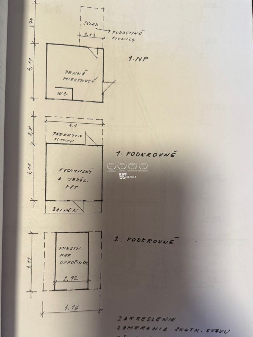 1. nadzemné podlažie: prekrytý vstup, kuchynský a jedálenský kút, sprchovací kút, samostatná toaleta. Súčasťou je aj priestranná pivnica (7,5 m²),