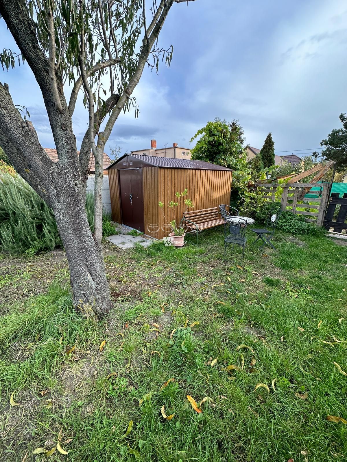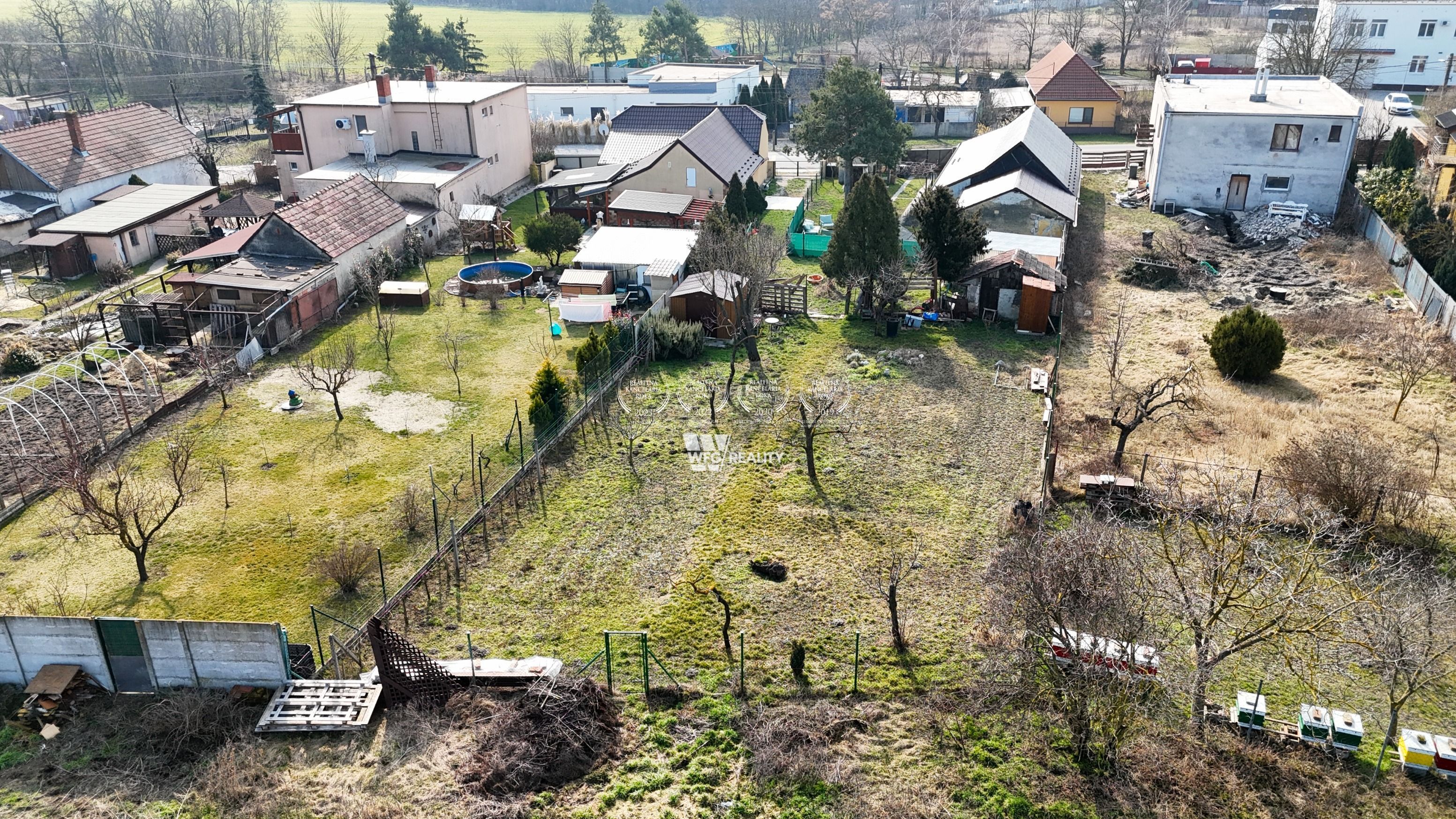 Na pozemku sa nachádzajú prípojka na elektriku, kanalizáciu, obecnú vodu a „bonus vlastná studňa. Možnosť prípojky aj na plyn. Súčasťou pozemku je plechová garáž (30m²), čo určite ocení noví majiteľ, ako aj sladké ovocie so stromov – figa, mandľa, broskyňa, jabloň. Na pozemok sa vchádza súkromnou príjazdovou cestou o šírke 3,5m a dĺžke 23,6m, ktorá patrí k pozemku. Samotný pozemok má šírku v prednej časti 17,66 m , v zadnej časti 13,83m. Dĺžka bez príjazdovej cesty je 26,75m.
